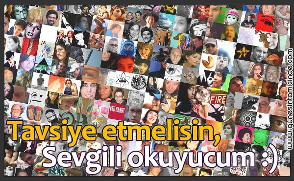 Ama benim kastettiğim henüz siteyi duymamış olanlara ulaşmak hakkında. Eğer bu siteyi beğeniyorsanız sözlü ya da e-mail ile tavsiyede bulunmanız, sizlerden beklediğim bu.