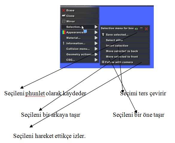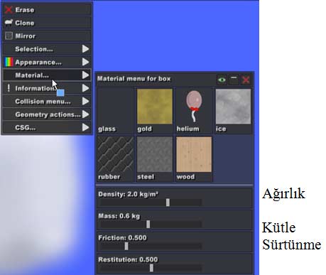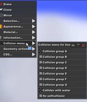Cismin a, b, c, d, e, f,g ve su ile çarpışıp çarpışmayacağını ayarlayabilirsiniz.