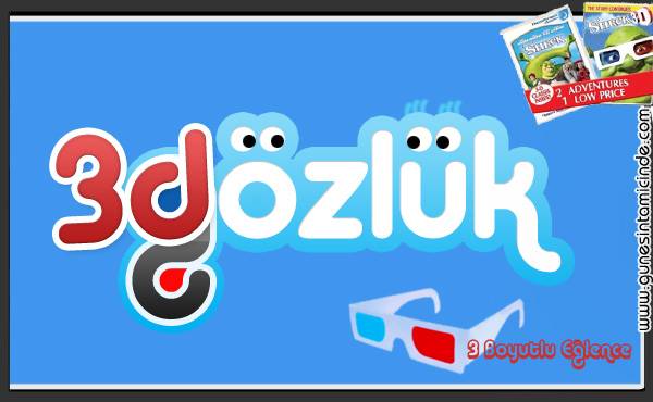 Hazırlayın 3d gözlüklerinizi sizler için yeni bir site daha açtım. Adı “3d gözlük” www.3dgozluk.com Neler anlatacağız? Bu defa az yazı bol görsel olacak. Kırmızı – mavi gözlüklerinizi taktığınızda ekranınızdan çıkacak gibi olacak bir sürü video, fotoğraf sizi bekliyor.