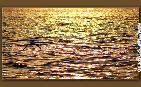 “Altın Dalgalar”ı İstanbul Boğazı’nda çektim. En ufacık bir filtre ya da Photoshop uygulaması yok. Sadece akşam güneşi batarken, dalgaların büründüğü turuncudan, kırmızıya hatta pembeye, mücevher renkler ve onlara kontrast martı.