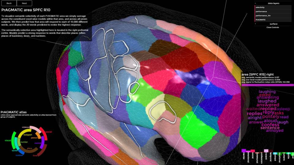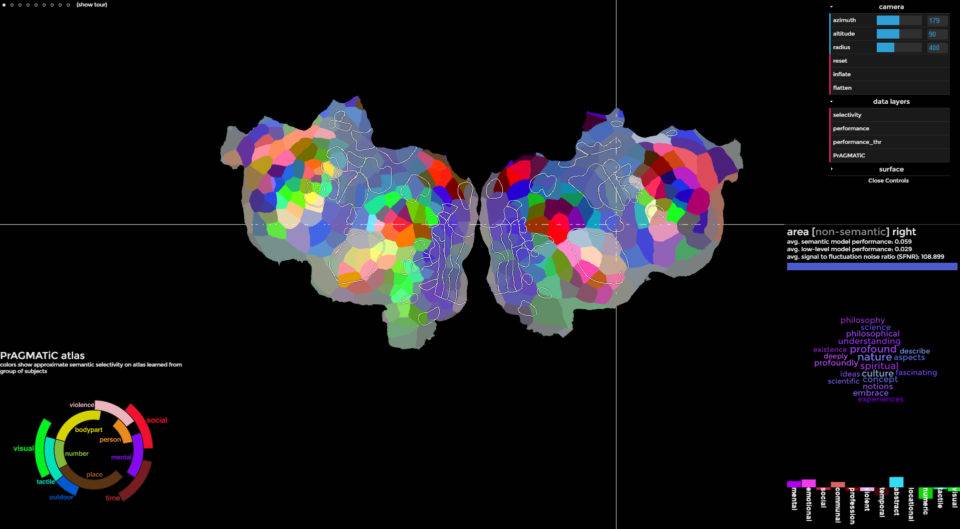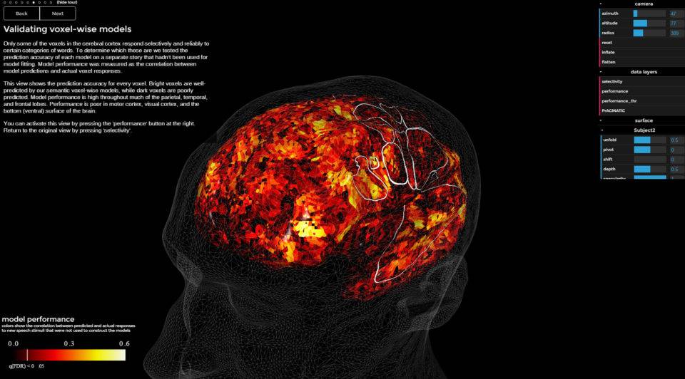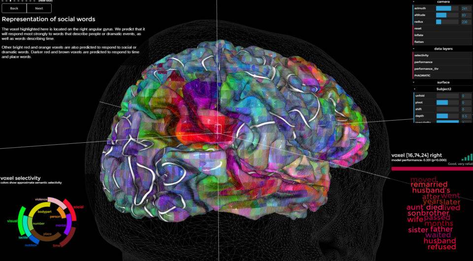 Dilediğiniz noktaya tıklarsınız o bölgedeki kelimeleri görürsünüz. Kelimeler beyin modelindeki voxellerde.