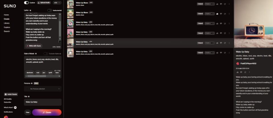 Ardından SUNO yapay zekasına gittim. https://suno.com/create