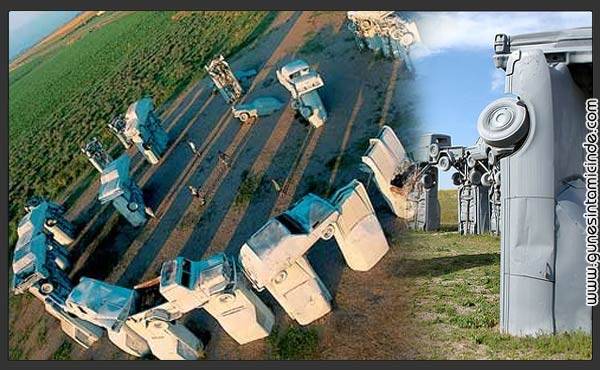 Amerikalı sanatçı Jim Reinders Nebraska’nın Alliance kasabasında 38 klasik Amerikan otomobilini gri sprey boyayla boyayıp megalit gibi sahaya dikerek(!) Stonehenge’in bir benzerini oluşturuyor. Geceleyin sizi oraya bıraksalar eminim sırtınız ürperir ancak sanırım Louvre müzesi de geceleyin aynı korkunçlukta olur. Mona Lisa’yı Giger’ın Allien tabloları gibi görmeniz bile mümkün olur.