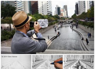 Ben Heine, fotoğrafları çizimleri ile tamamlıyor. Oldukça da ünlü.