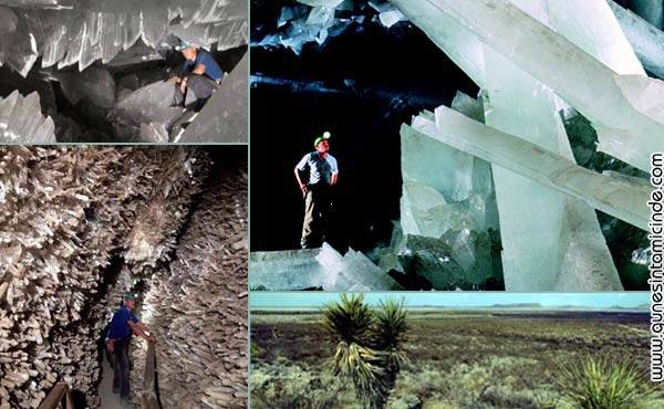 Anlatılana göre 26 milyon yıl önce patlayan yanardağ yükselerek bir dağ oluştururken içindeki odacıklar mağara haline geliyor. Daha sonra soğurken sabit bir 58 derece sıcaklık ve mineral açısından olağaüstü zengin su karışımı alçıtaşını düzgün formlar halinde kristale dönüştürüyor. Sıcaklık azaldıkça formlar kesinleşiyor. Ayrıca Naica dağı madenleri dünyanın en zengin gümüş, çinko ve grafit rezervlerine sahip.