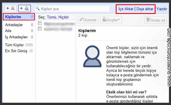 Kişi listemizi aktarmak için genellikle kişiler menüsüne gidilip liste dışarıya gönderilir. Bir dosya olarak aktarılır ve diğer e-posta adresinde yine kullanıcılar seçilip dosya yüklenir. Toplamda 1 dakikalık süreyle tamamlanacak işlemi detaylandıralım.