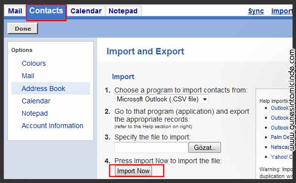 Yahoo’da Kişiler İçeri Nasıl Aktarılır?