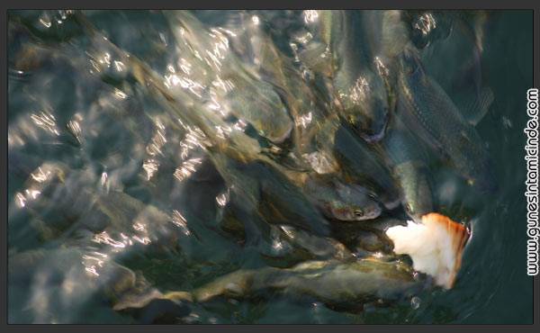 Bugün İstanbul Küçüksu Kasrı sahilinde ekmekle beslediğimiz balıklar muhteşem görüntüler verdiler. Ancak akşam saatleri ışığı yakalamak ve ışık hızında hareket eden bu canlıları dondurmak hiç kolay olmadı, hele de balık avlama mevsimi yeniden açılmışken :) Ondan fazla poz çektim, sadece bu istediğime yaklaştı. Fotoğrafın ismi eşimin ilhamıyla şekillendi.
