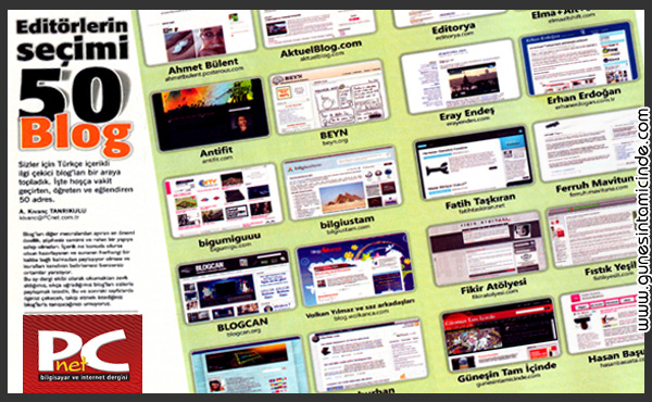 Güneşin Tam İçinde, aylık bilgisayar dergisi PCnet editörleri tarafından Türkiye’nin 50 blogu listesinde tanıtıldı.