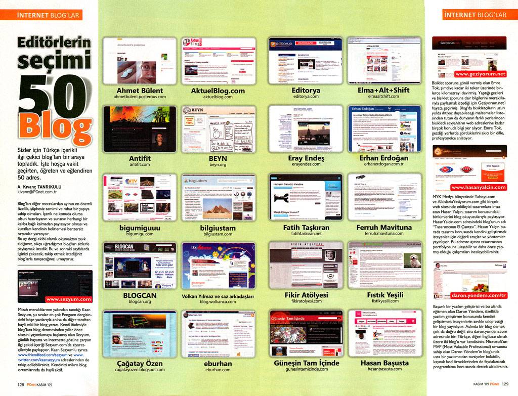 Sadede gelelim. Aylık PCnet dergisi bizi onurlandırdı ve alfabetik sırada verdikleri blog listesinde büyük puntolarla ilk bölümde tanıttı. Darısı gelişmekte ve orijinal içeriği ile topluma ulaşmaya çalışan kaliteli genç blogların başına. Editörlere başta makalenin yazarı A. Kıvanç TANRIKULU’nun şahsında teşekkür ederiz elbette yazı işleri müdürü Erdal Kaplansever’e de.