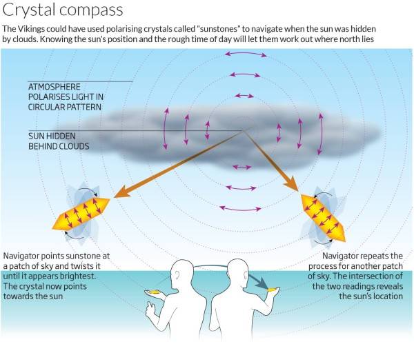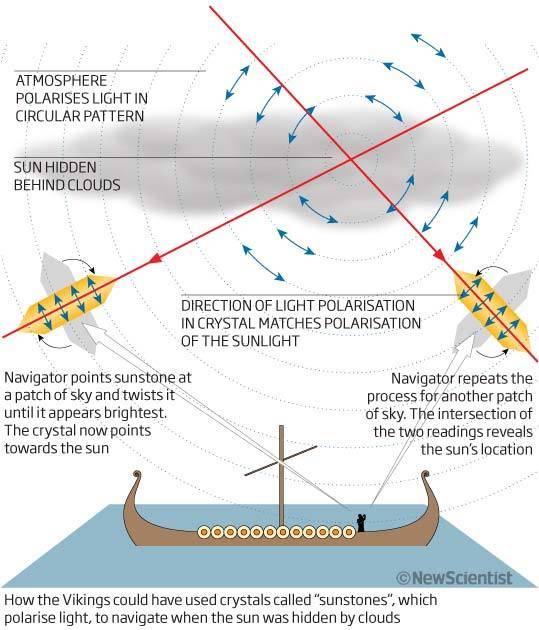 Vikingler kuzeyde bulutlu havalarda güneşi görmeden nasıl yön bulurdu? Eskiden yön bulmakla görevli kişi polarize bir kristal kullanırdı. Buna “Güneş Taşı” derlerdi.