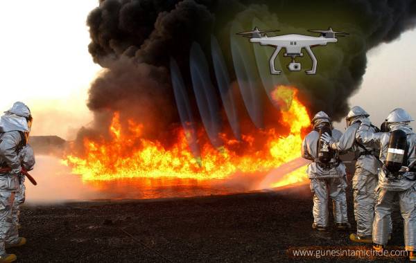 Elbette haber sitelerinde, bu icat biraz küçültülüp dronelara eklense, güvenli bir mesafeden ciddi tehlikeleri olan kimyasal yangınlarda kullanılsa, ne harika olur diye fikirler sunulmuş. Şöyle bir şey tasarladım.