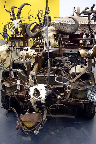 1960 yılında araba preslerinde sıkıştırılmış hurda arabaları sergilemişti.