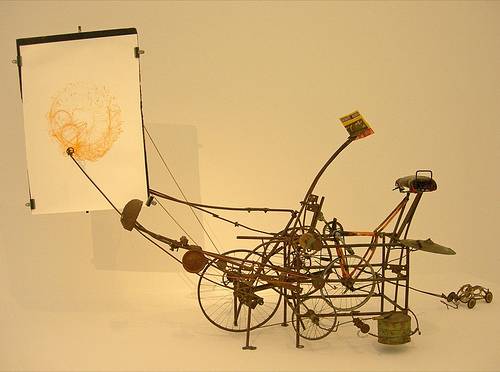 Ülkemizde de en çok bilinen eseri kendi kendisini yok eden makine (self-destroying Homage to New York) (1960) ve Dünyanın Sonu adlı eserleri kinetik sanatta kontrolsüz makineleşmenin dünyayı getireceği noktayı gösteriyordu.