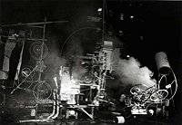 Tinguely 1955 yılında atık malzemelerle karmaşık gürültüler üreten rölyefler de yarattı. Böylece sanatını sadece görsel değil işitsel anlamda da bütünleştirmeye başladı.