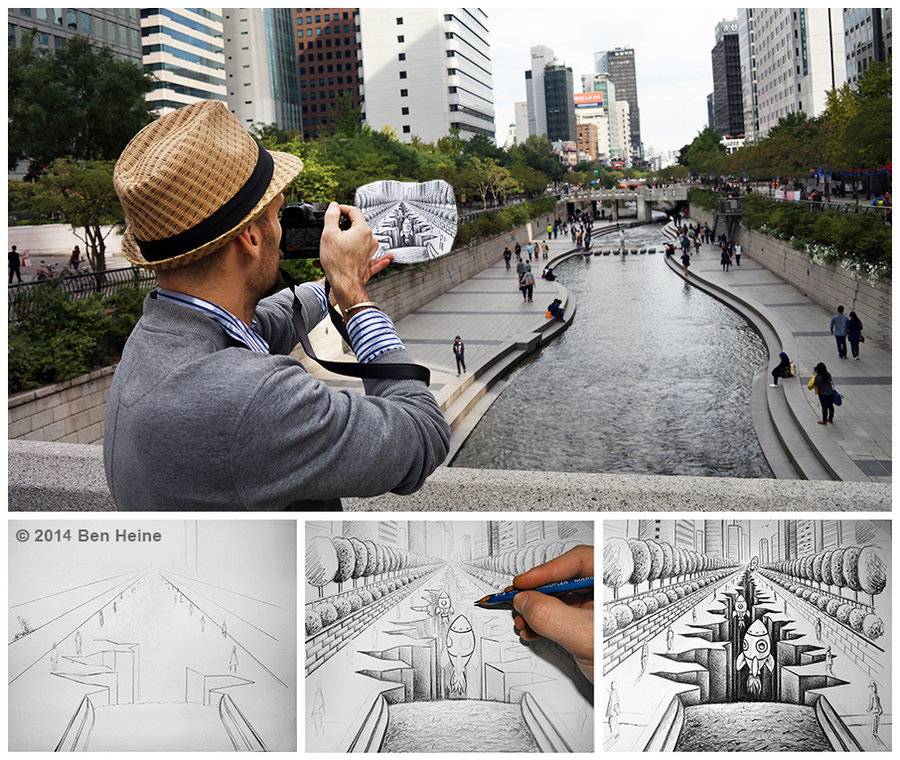 Ben Heine, fotoğrafları çizimleri ile tamamlıyor. Oldukça da ünlü.