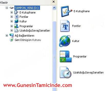 Bir de daha eğlenceli bir seçenek olarak “Klasör Simgeleri” var. Bunun klasör resminden farkı masaüstünde bulunan Bilgisayarım, Geri dönüşüm kutusu gibi güzel bir simgenin (icon) klasör görünümüne verilebilmesi. Böyle yaptığınızda yukarıda gördüğünüz gibi gayet şık bir sonuç oluyor. Nasıl yaparız? Yine istediğimiz klasörün üstünde sağ tıklayıp özelliklerine girer ve üstte özelleştir menüsünden Klasör simgeleri diyerek simgemizi seçeriz.