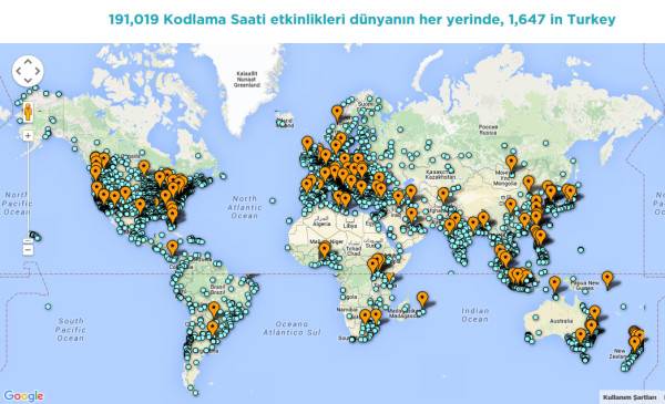 Haritayı kendiniz de inceleyebilirsiniz. https://hourofcode.com/tr