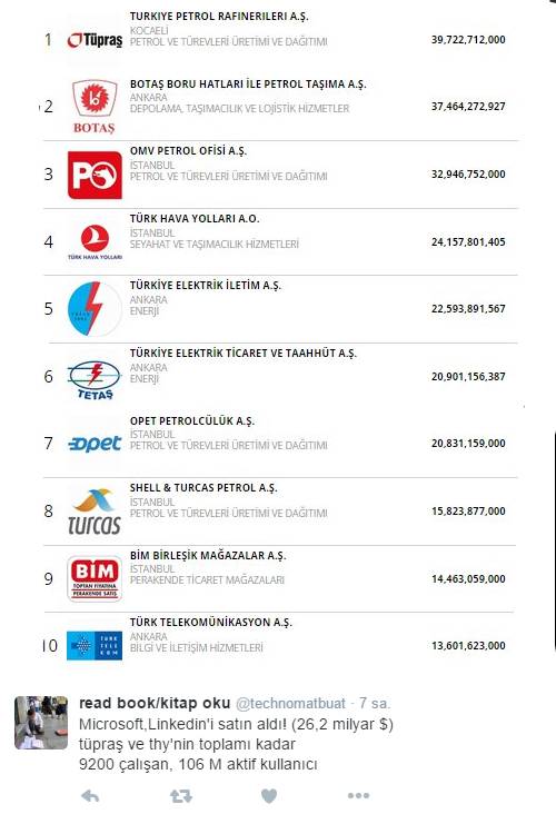 Bime bak sen 15 milyar dolar marka değerine sahip. Linkedln falan hikaye listeye göre bir petrol şirketi kurmak lazım…