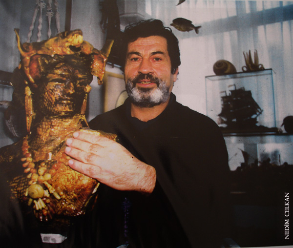 C: Burada görmüş olduklarından daha kuvvetlisi atölyemde. Mesela 1,92 boyundaki Jül Sezar?dı. Kılıcı vardı 2,5 metreye yaklaştı. Büyük otele zor götürdüm sonra kolunu kestim. Sandıkta yolculukta zor oluyor. Kolunu kesince “Kolunu kaybetmiş sıradan bir Romalı Subay oldu” (Gülüyoruz) Sonra dediler ki bu kolu yerine yeniden tak.