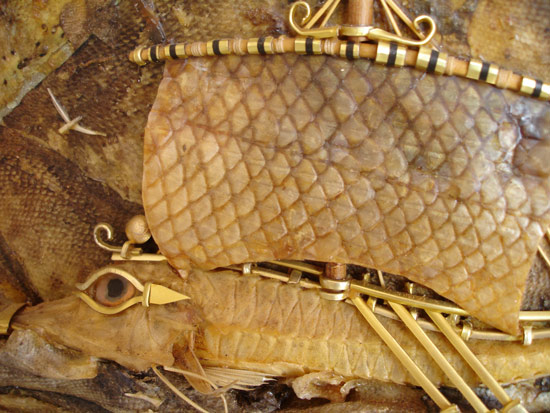 “Ağırlıklı olarak balık derisi, pavurya (yengeç), midye istiridye deniz bitkileri deniz atı, balık kemiği ve balık yüzgecini malzeme olarak kullanıyor.”