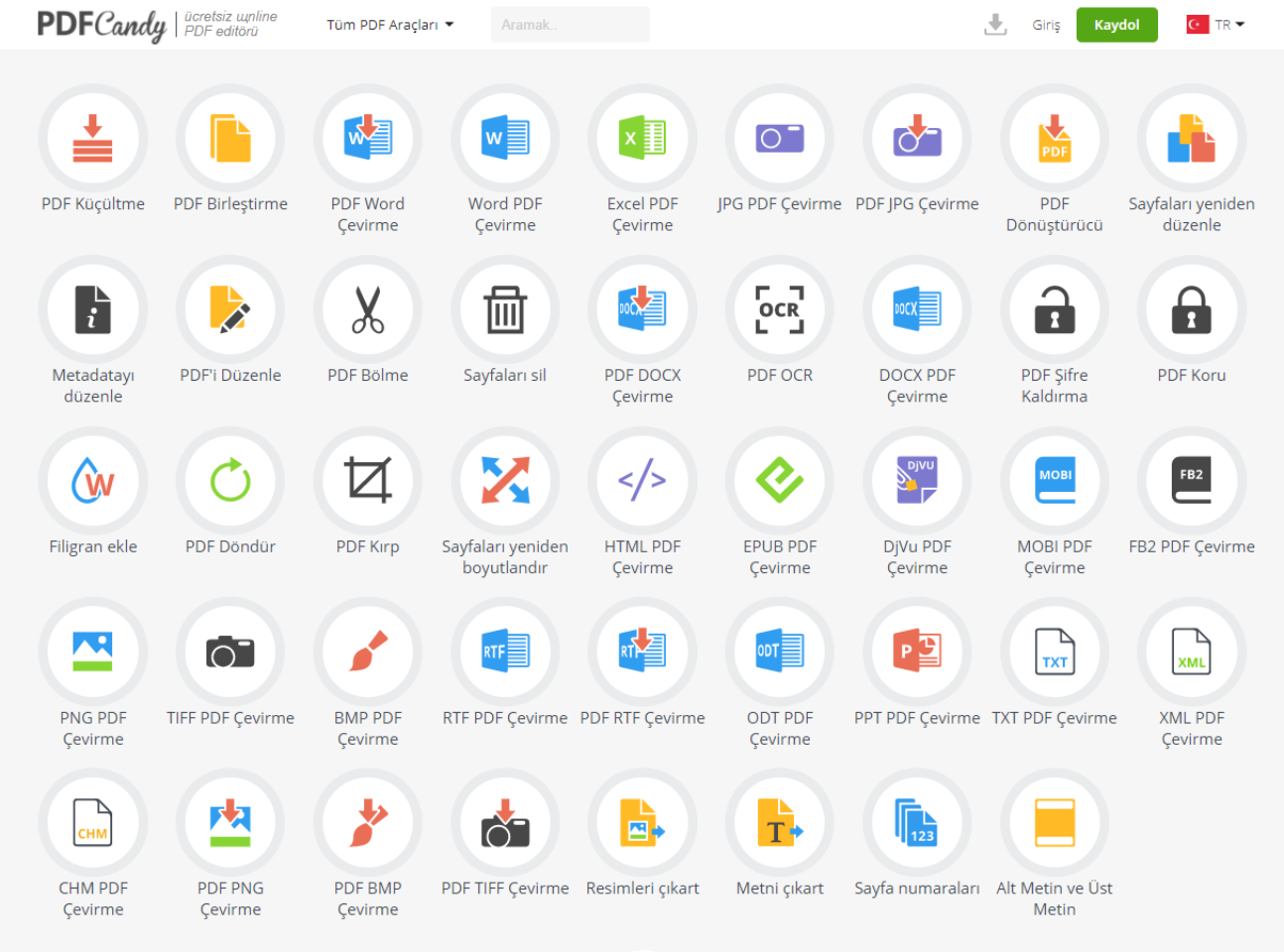 Aşağıdaki PDF işlemlerini yapabiliyorsunuz: