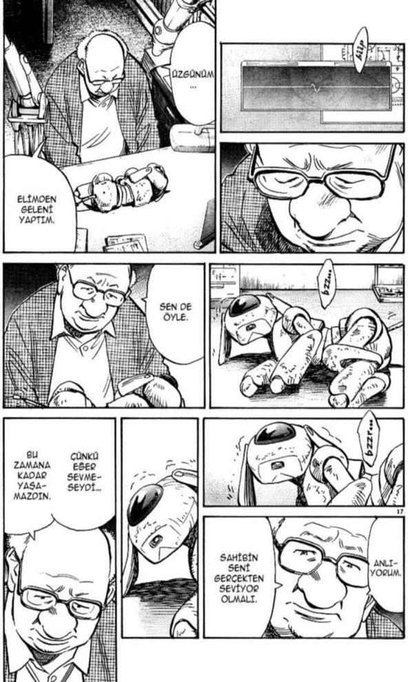 Professor Ochanomizu’nun yaralı köpek robotu tamir etmeye çalışırken, gece boyunca uyumadan çalışması, evcil hayvanları sevmemiz gibi robotları da seveceğimize beni ikna etti.