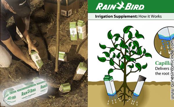 Rain Bird su tutan jeller. Bir defa sulayın, toprağı sürekli nemli tutsun. Mesela 30 günle 90 gün arası. Yanındaki bitkilerin sürekli su almasını sağlasın. Hem çevreci, hem ekonomik, hem kıraç çöl arazileri tarıma ya da ağaçlandırmaya hazır getirme de süper buluş.