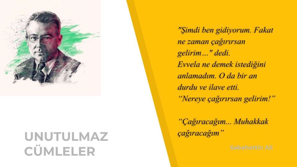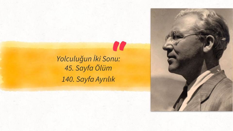 Artık birbirimize veda etmiş bulunuyorduk. … Kapının önünde bekleyenlere yüzümü göstermemek için adeta koşarcasına holden geçtim ve sokağa fırladım. Yolda soğuk bir rüzgar yanaklarımı kurutu. Hiç durmadan “Yazık!.. Yazık!..” Diye söyleniyordum.