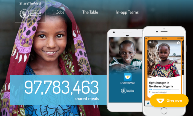 ShareTheMeal, açlıkla mücadele eden dünyanın en büyük insani yardım kuruluşu olan Birleşmiş Milletler Dünya Gıda Programı‘nın (WFP) bir girişimidir. WFP her yıl yaklaşık 83 ülkede 86 milyondan fazla kişiye gıda yardımı ile ulaşmaktadır. WFP % 100 gönüllü olarak finanse edildiğinden, her bağış önemlidir.