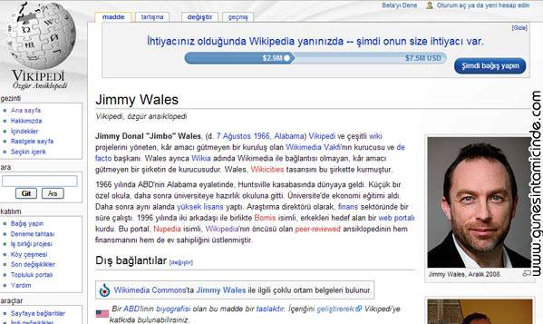 Jimmy Wales, İstanbul’a geldiğinde verdiği konferansa katılma ve kendisiyle tanışma mutluluğuna erişmiştim. Konuşmasında eğer reklam alınmasına izin verse, bugün İstanbul’a özel jeti ile gelebileceğini söylemiş ve bunu istemediklerini ısrarla tekrarlamıştı. İhtiyaç duydukları para sistemin server giderleri küçük bir yönetim takımının maaşları ile Internete halen erişimi olmayan yoksul bölgelere kağıt baskılı Wikipedia ulaştırmak içindi. Kısacası bilginin yansız kalmasının tek yolunun bağımsız kalmak olduğunu söylüyordu ve haklıydı.