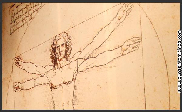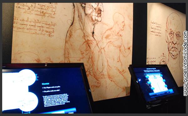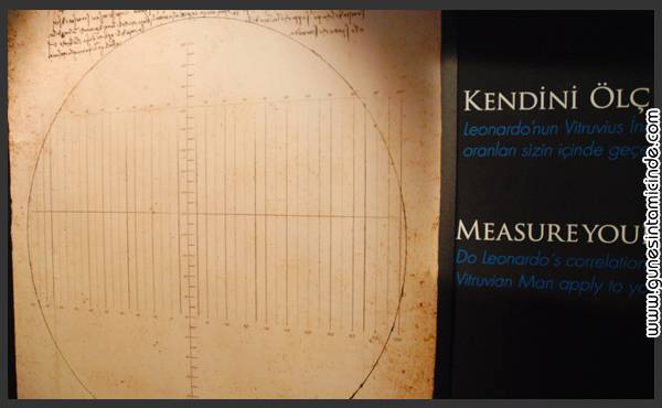 Gezdiğimiz bölümlerde olayı aydınlatan bir kaç TV hep yanyanaydı. Dokunarak deneyerek ilginç sayfalar gezebiliyorsunuz. Mesela anatomi bölümünde, kolunuzun aslında başparmak hariç, dört parmak genişlikte olduğunu göreceksiniz. Başın, 3 bölümde eşitliğini, boyun diğer organlara oranlarındaki şaşmaz geometriyi şaşkınlıkla ölçeceksiniz ve tabii unutmamalı ünlü Vitrivius Adamı