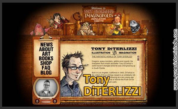 Tony DiTerlizzi, şu an Amerika’da ikamet ediyor. Çocuk kitapları, oyunlar özellikle çizim konuları.