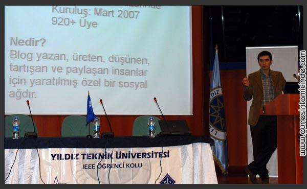 Bugünse (06.11.2007) Yıldız Teknik Üniversitesi’nde Microsoft Türkiye ana sponsorluğunda Blograzzi, Türk Blog Yazarları, Eğitim İlanları, Yıldız Teknik Üniversitesi IEEE Öğrenci kolu organizasyonuyla oldukça yoğun bir toplantı yaptık. Konferans planlanandan bir saat kadar geç bitti.