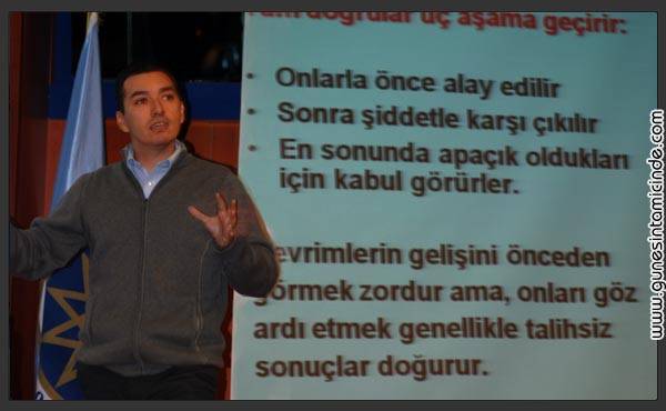 Geleneksel iletişim şekillerini, yukardan aşağıya buyurmacı iletişimle yatay iletişim örnekleri çok güzel olan Selim Bey’in sunumunda iletişim tanımları düşündürücüydü.