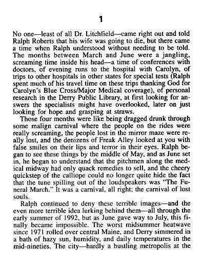 Ben de bir King hayranıyım, dikkatimi bir şey çekti. Genelde insanlar King in romanlarına başladıklarında çabuk sıkılıyorlar ve bırakıyorlar. Halbuki adam olayı 30. sayfadan sonra başlatıp hayrete düşürüyor okurunu. Bu yüzden okumamış olanlara tavsiyem, 30. sayfayı geçsinler:)