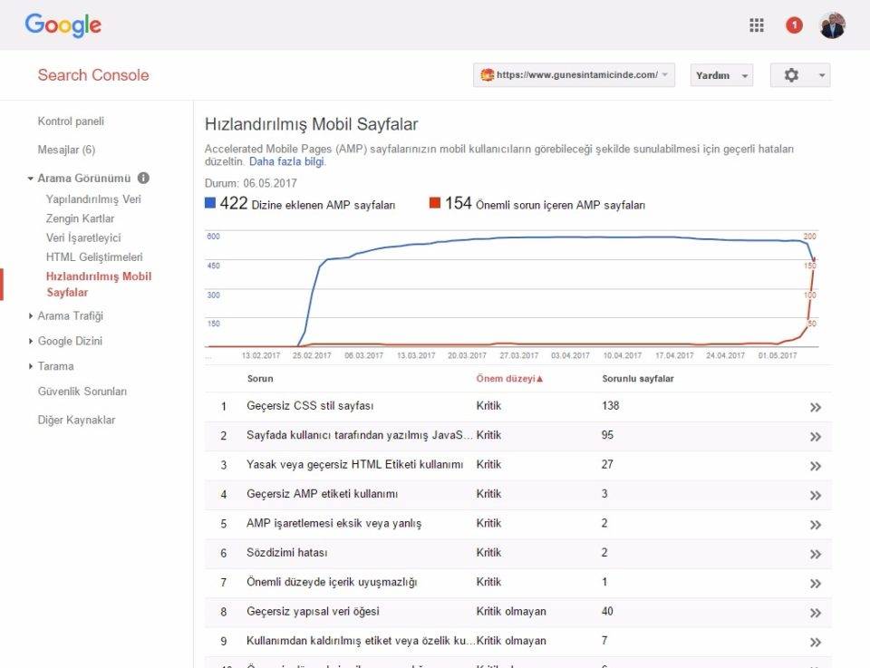 Tabloda kaç sayfanızın Google AMP dizinine eklendiği. Kabul edilmeyen sayfaların neden reddedildiği ve arama sonuçlarından çıkarıldığı da görülecek. Dolayısıyla AMP işi biraz eklentilerden vazgeçmek anlamına da geliyor. Javascript kullanan eklentiler o sayfada yer alamayacaktır.