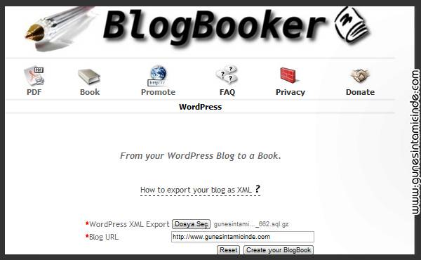 http://www.blogbooker.com/pdf.php adresine gidin. Sisteminizin WordPress ya da blogger olduğunu seçin.