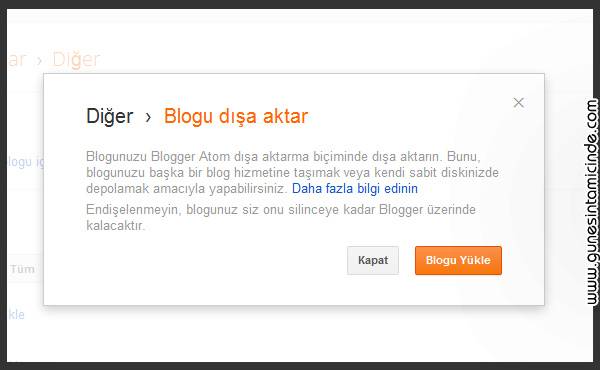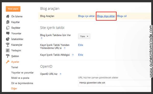 b) Blogger İçin Yazıları Dışarı Aktarmak
