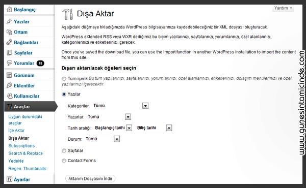 a) WordPress İçin Yazıları Dışarı Aktarmak