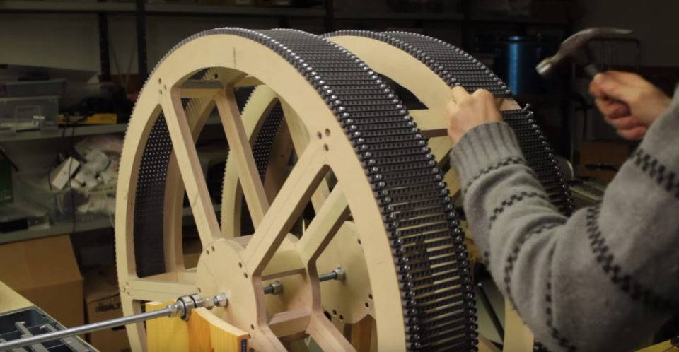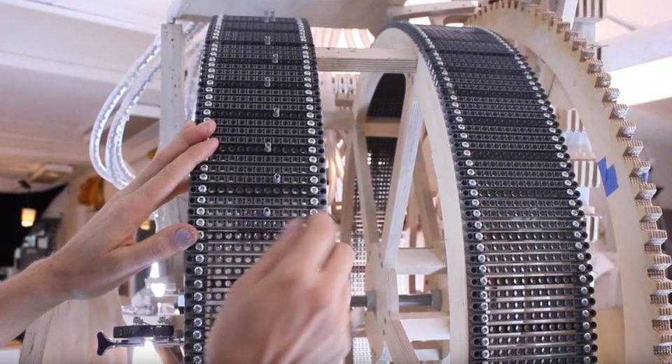Genel müzik ritmini oluşturan ve müzik kutularındaki demir parçanın büyütülmüş halini bir çark olarak dönerken görüyoruz. Notaların nereye geleceğini de biliyor. Şuraya tıklarsanız eliyle yerleştirme anını izleyebilirsiniz